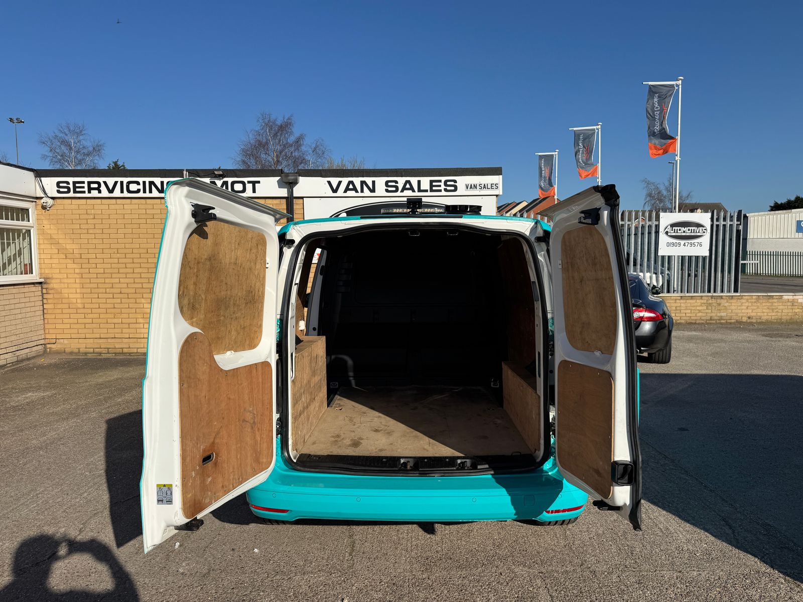 Introducing the Volkswagen Caddy 2.0 TDI C20 Commerce Plus Panel Van – a perfect blend of practicality and performance, now available at Automotives in Worksop, Nottinghamshire. This exceptional van, dressed in an eye-catching blue/green colour, is designed to turn heads while delivering unparalleled efficiency and reliability.